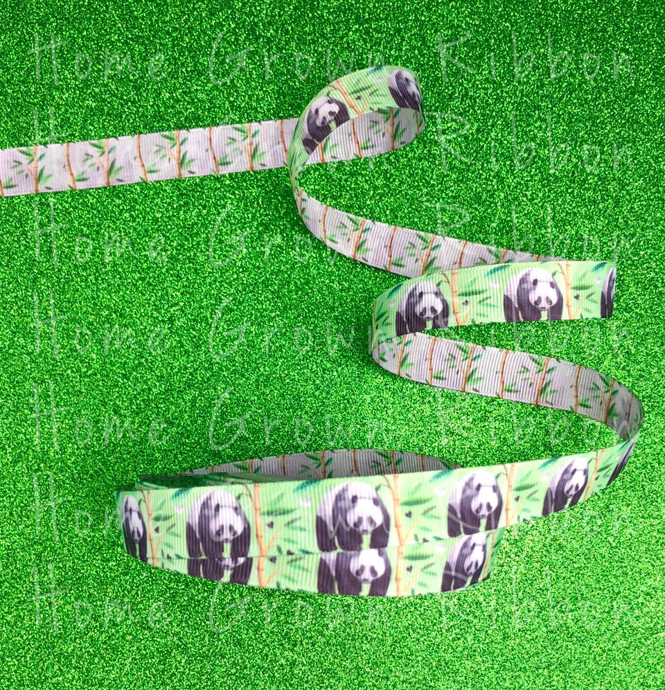 Double Faced US Designer Ribbon featuring Panda's on one side and Bamboo on the other side