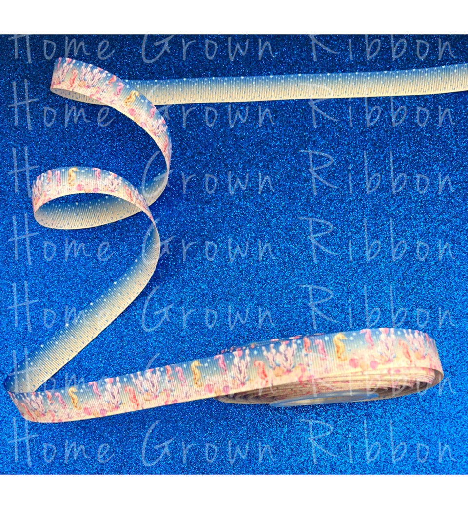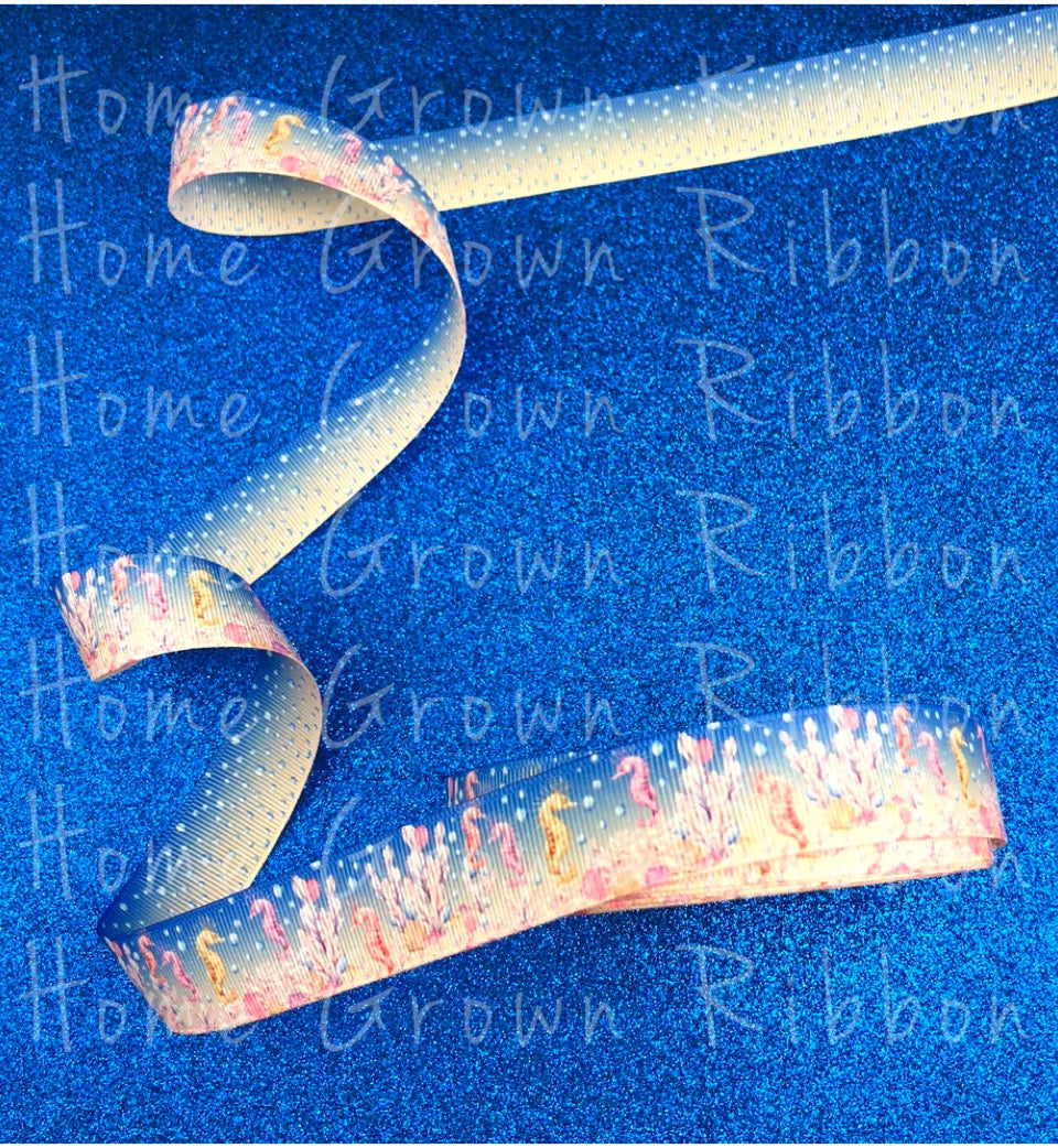 Double Faced US Designer Ribbon featuring Seahorses on one side and bubbles on the other.