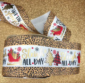 Sleigh All Day - Leopard - USDR Ribbon 3 Inch
