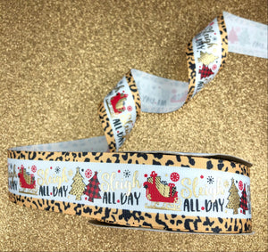 Sleigh All Day - Leopard - USDR Ribbon 1.5 Inch