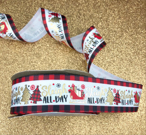 Sleigh All Day - Buffalo Plaid and Leopard - USDR Ribbon 3 Inch