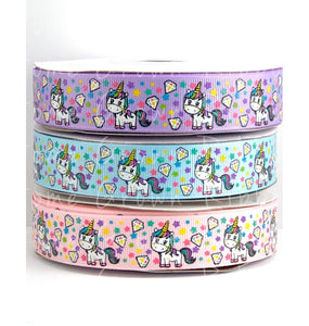 My Mama Don't Like You Coordinate - Unicorns, Diamonds, and Stars USDR Grosgrain Ribbon - 7/8 Inch