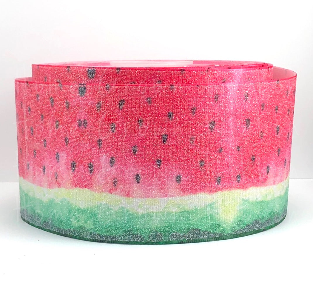 Watercolor Watermelon Grosgrain Ribbon with the super soft, easy to work with Silver Glitter Overlay