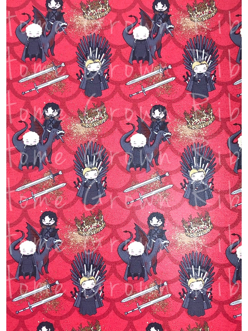 Super cute cartoon Game of Thrones Cersei, Jon, Dany and the Iron Throne Faux Leather Sheet