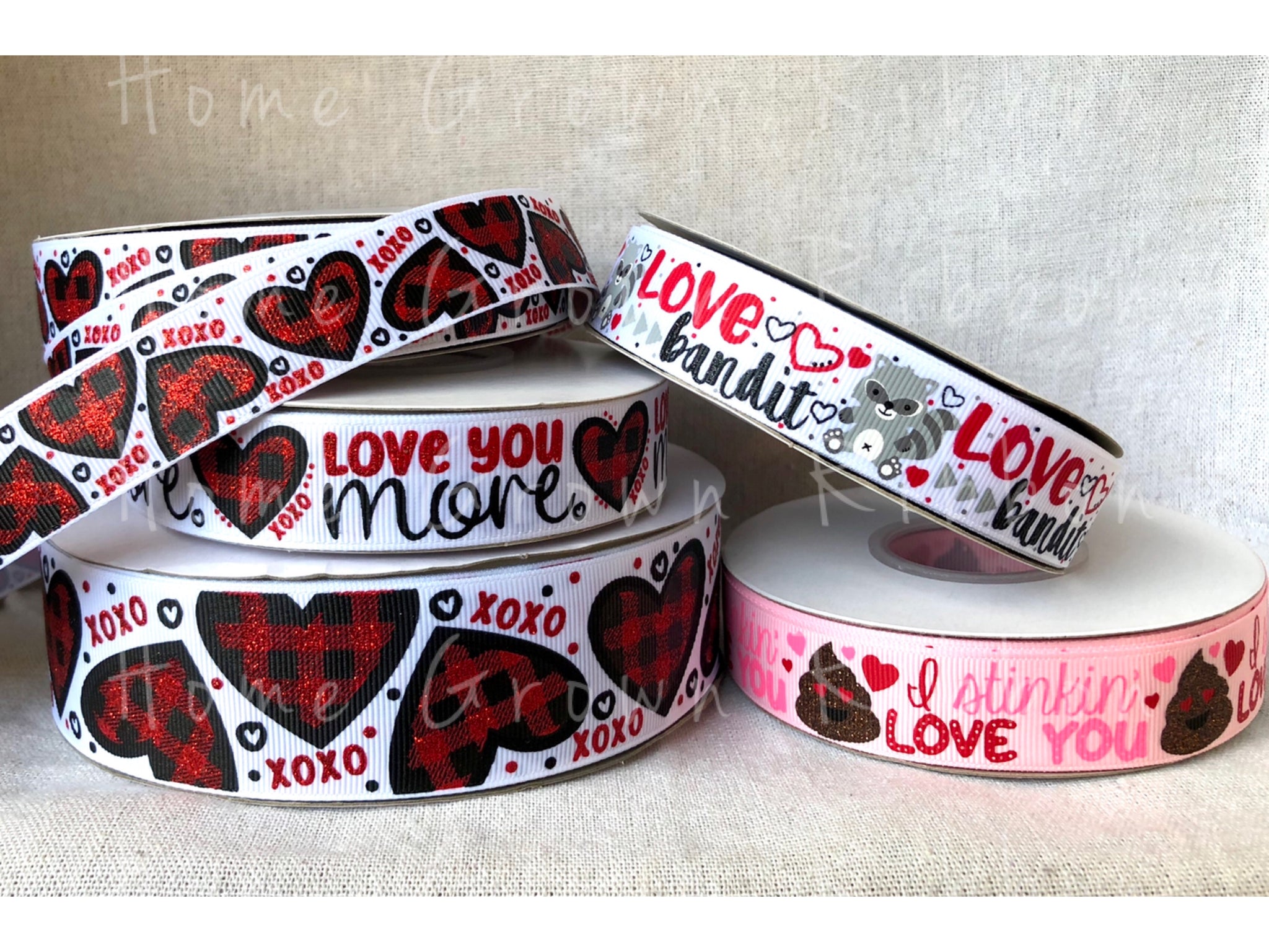 Valentine's Day Grosgrain Ribbon with Red Glitter Accents