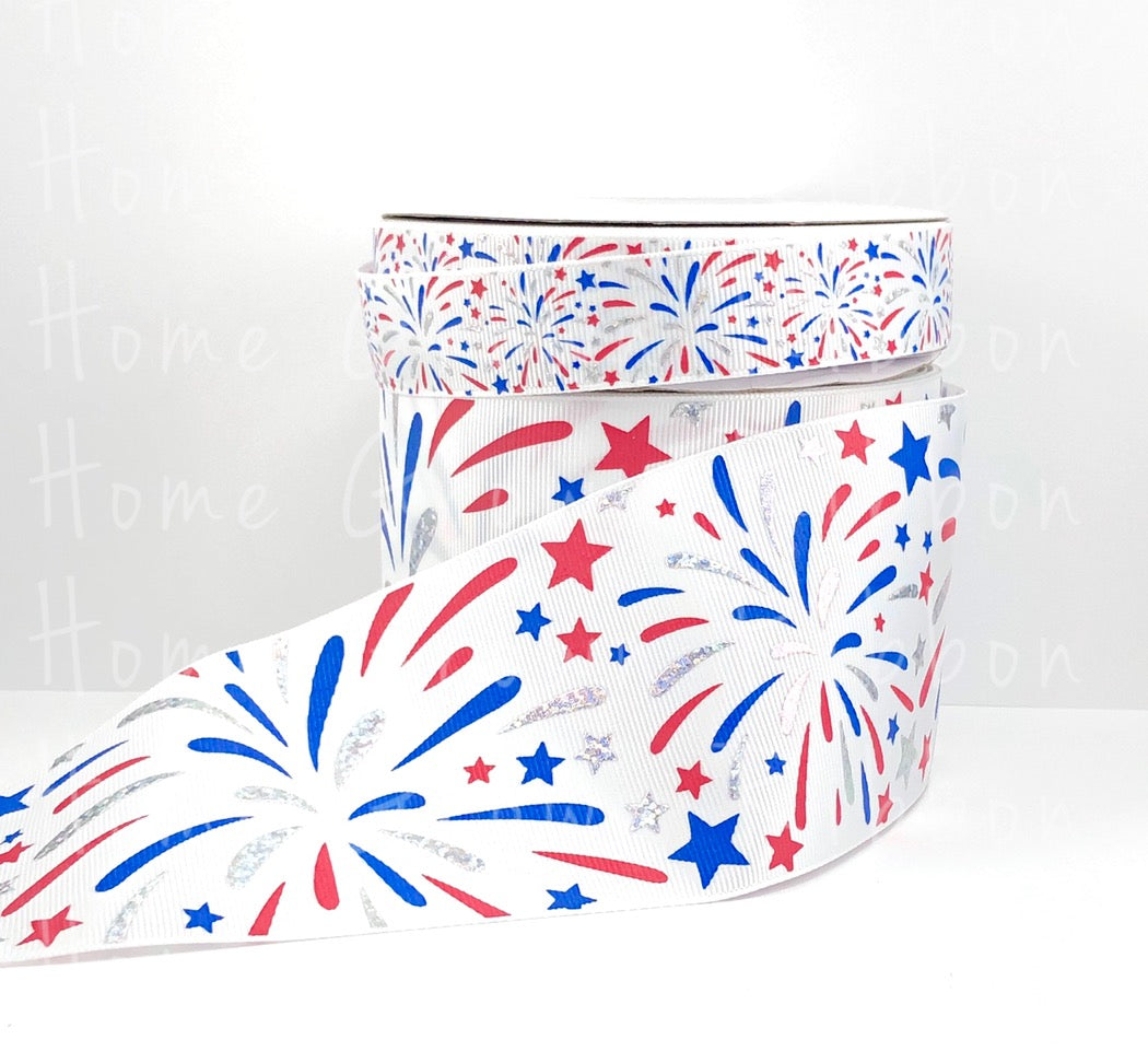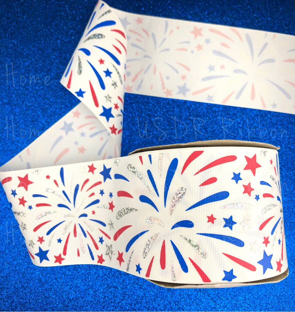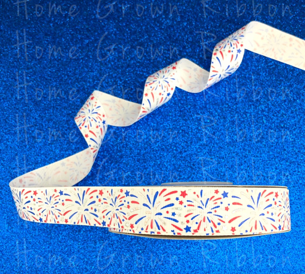 Fireworks UDSR Grosgrain Ribbon with Silver Foil Accents